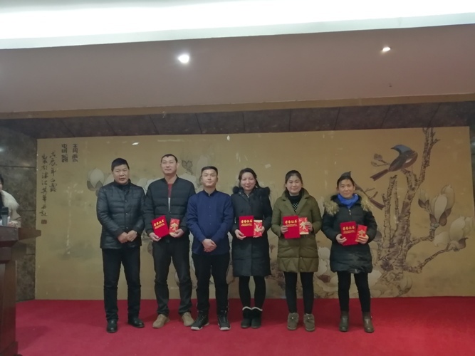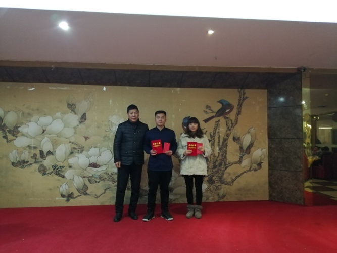 团年晚宴现场进行了颁奖仪式,相继颁出了2019年年度全勤奖、年度优秀员工、年度优秀管理人员等奖项,董事长及明副总分别为获奖者颁发了奖金和荣誉证书,以资鼓励。
