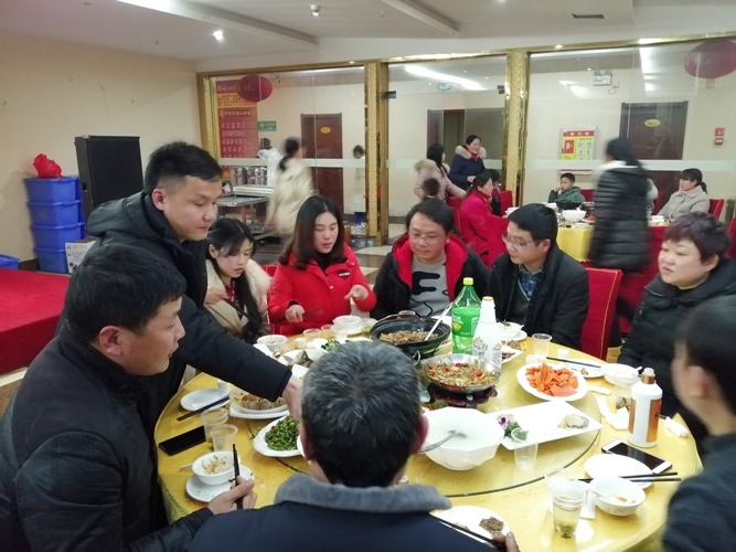 2020年1月18日(农历腊月二十四)17:00点湖北瑞硕电子股份有限公司2019团年晚宴在客临顿大酒店喜气开宴。公司董事长刘清伟先生携公司管理层领导,各部门员工与家人们欢聚一堂,一同总结2019年工作,共同欢庆新年,同吃幸福团年宴,现场欢声笑语,热闹非凡。
